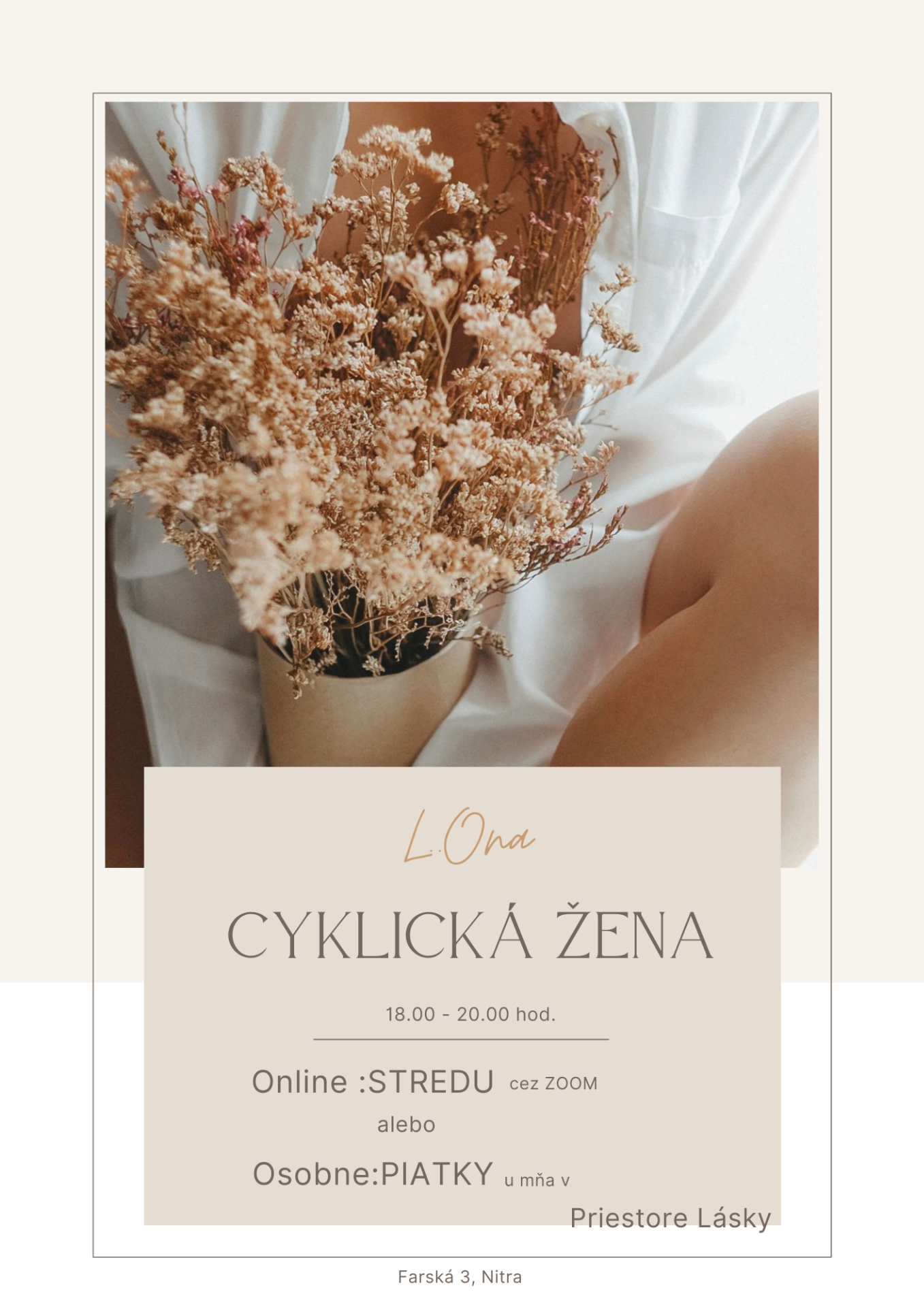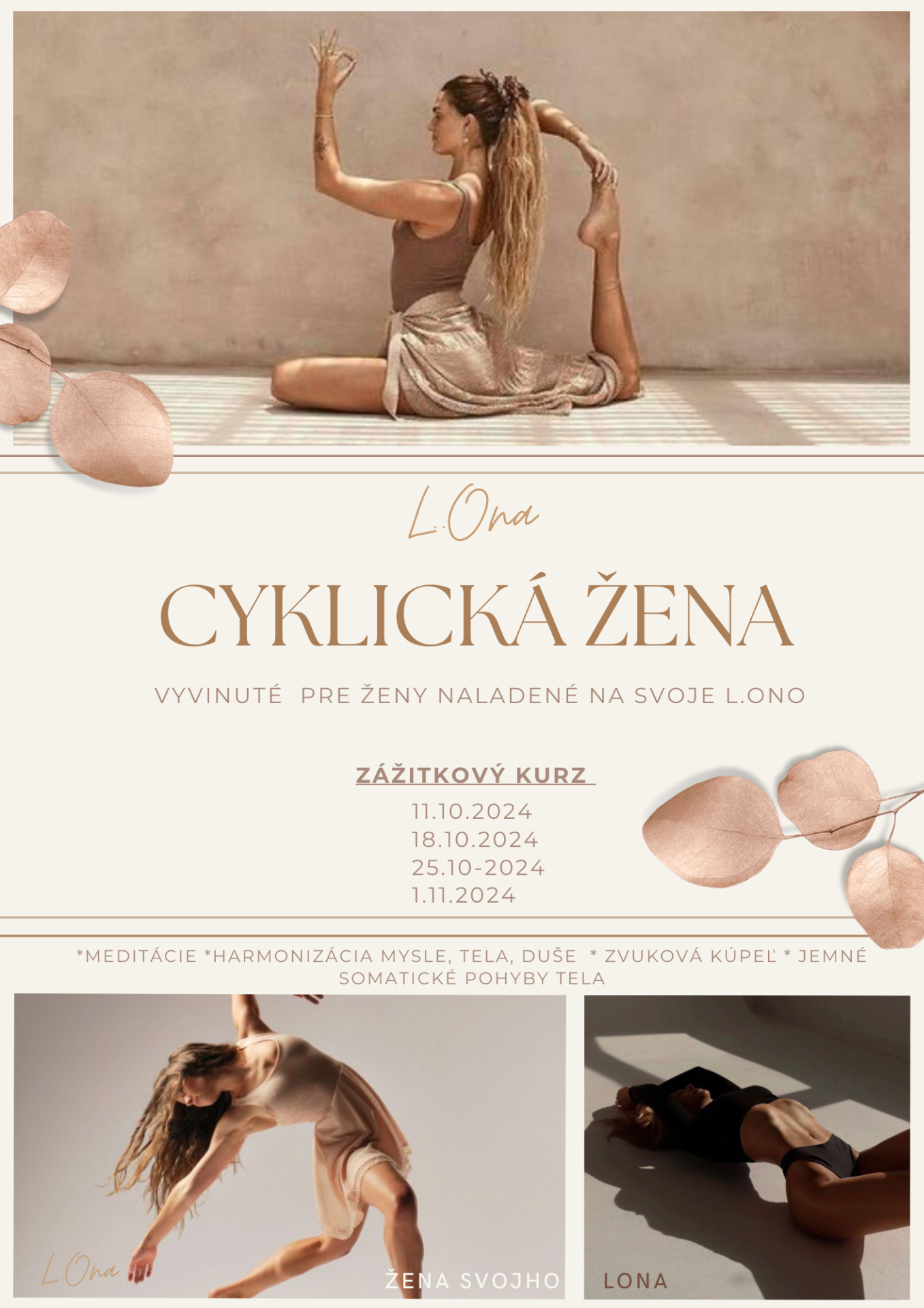 Pozývam ťa na Cyklus 4 Týždňových stretnutí, počas ktorých si Povieme o hormonálnej ROVNOVÁHE, Naučíme sa Somatické cviky a prácu s Panvovým dnom.
